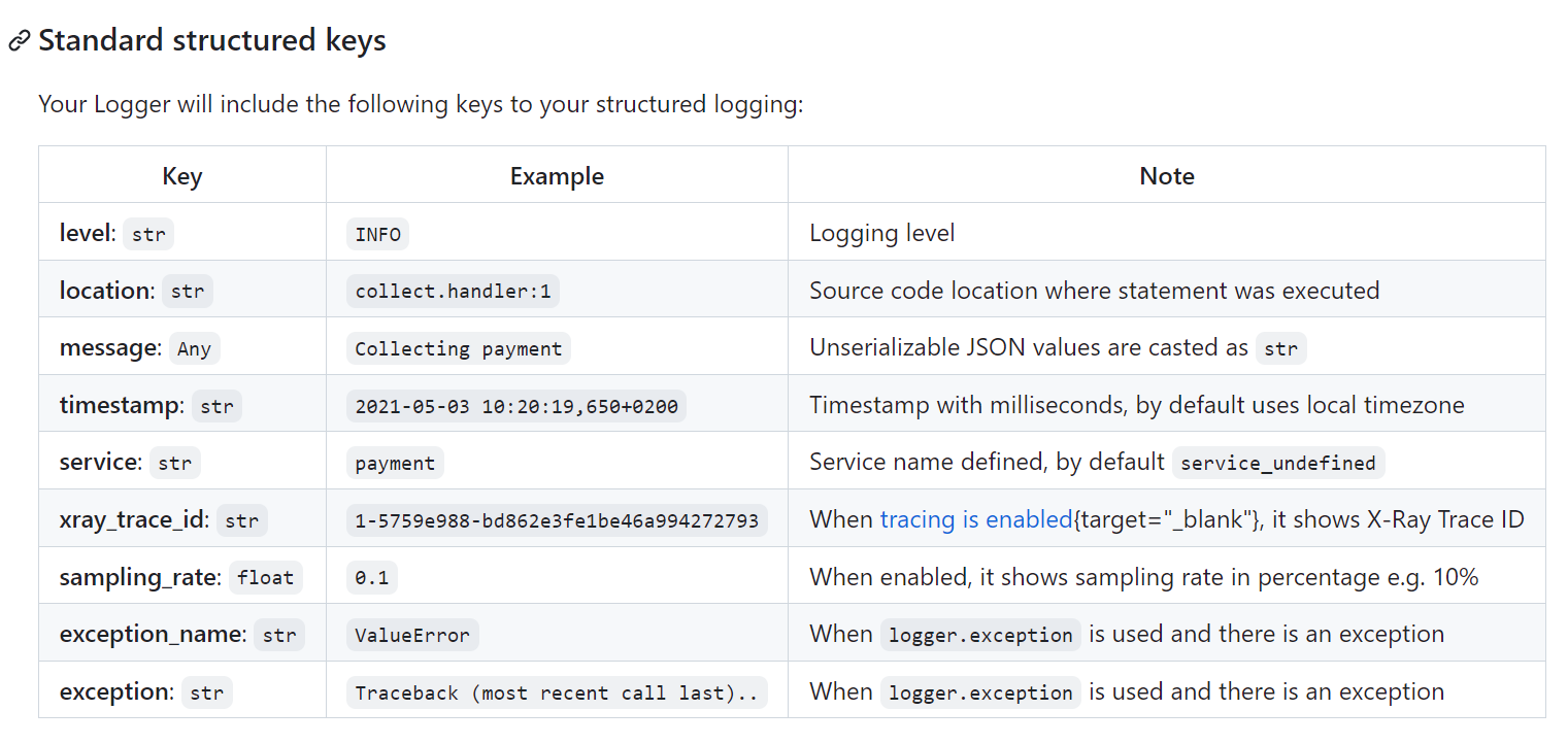 https://github.com/aws-powertools/powertools-lambda-python/blob/develop/docs/core/logger.md#standard-structured-keys