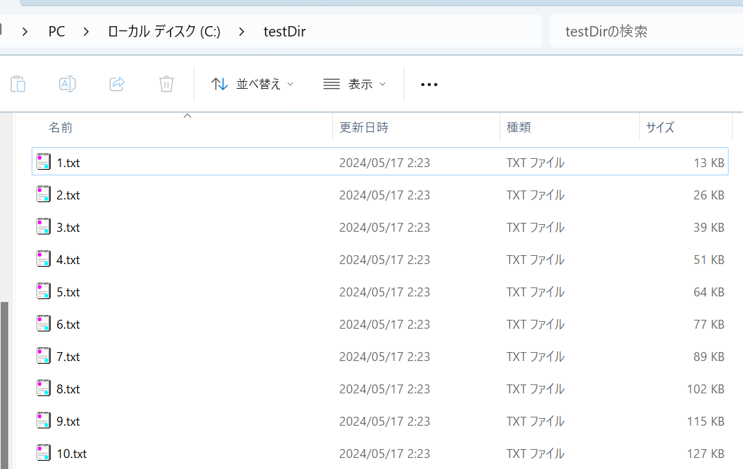 - 10개의 파일이 생성되었다.