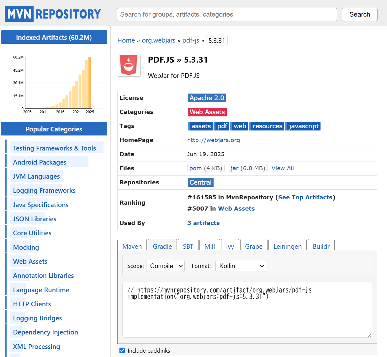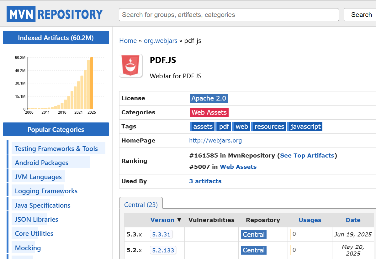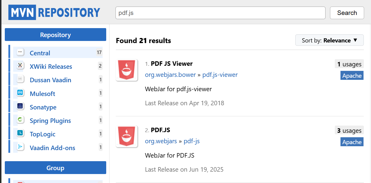 - maven에서 pdf.js를 검색해본다.